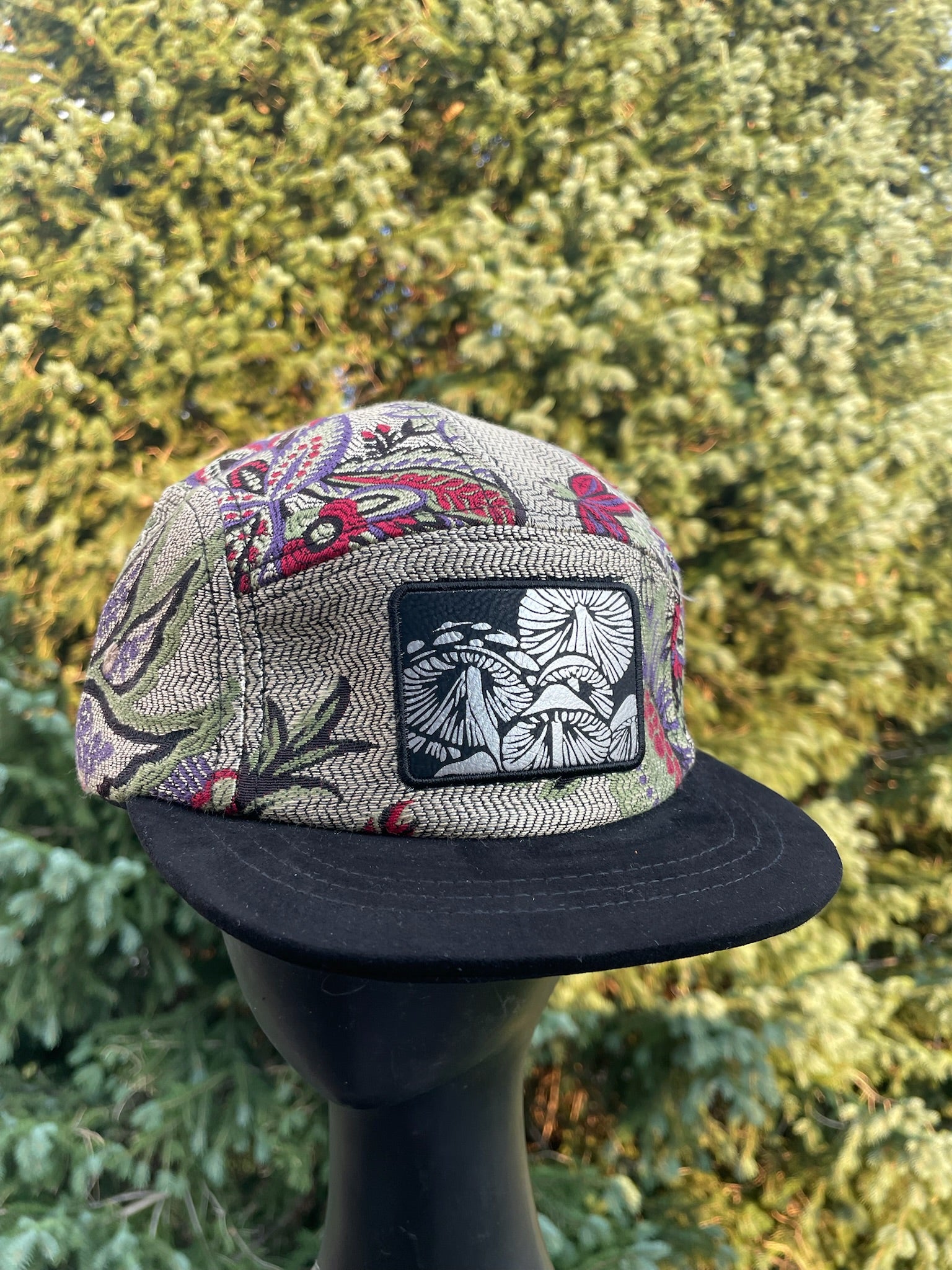Silver Floral - 5 Panel - Long Brim