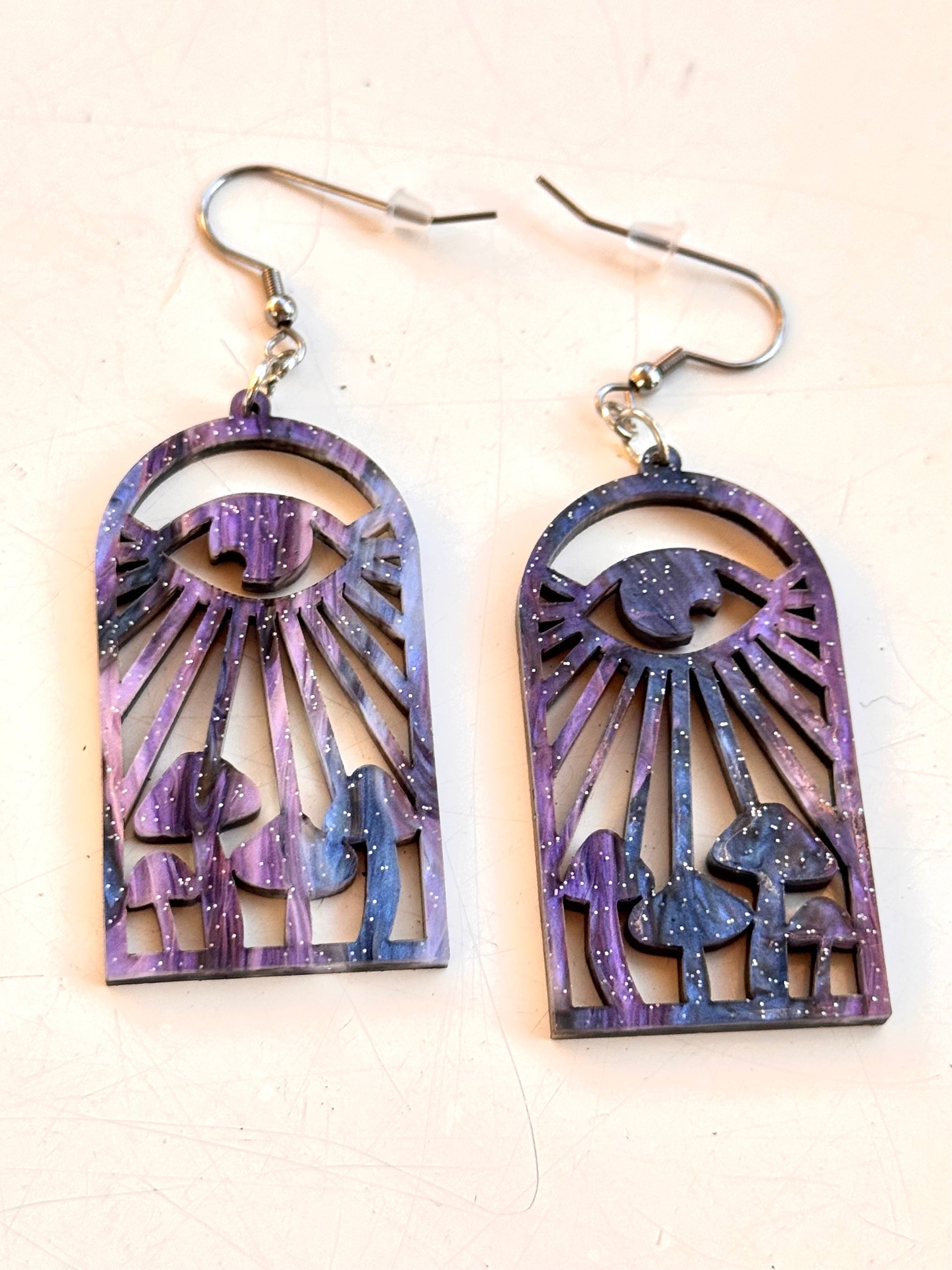 With sunlit rays casting over whimsical mushrooms, these earrings blend celestial charm with earthy magic.