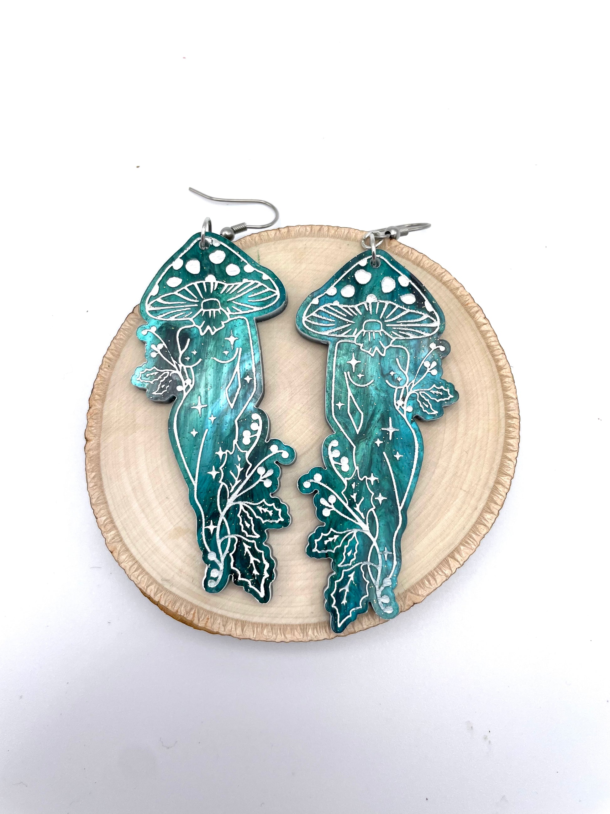 Featuring pink swirls and celestial sparkles, these earrings bring a touch of woodland magic and stardust to your style.