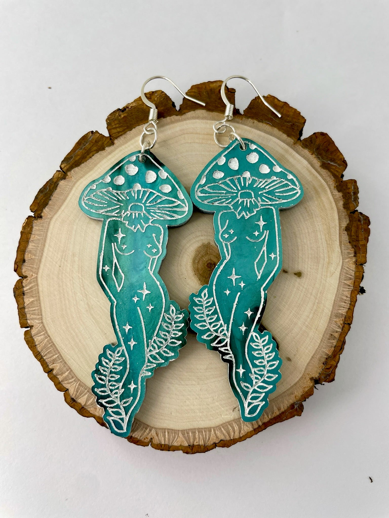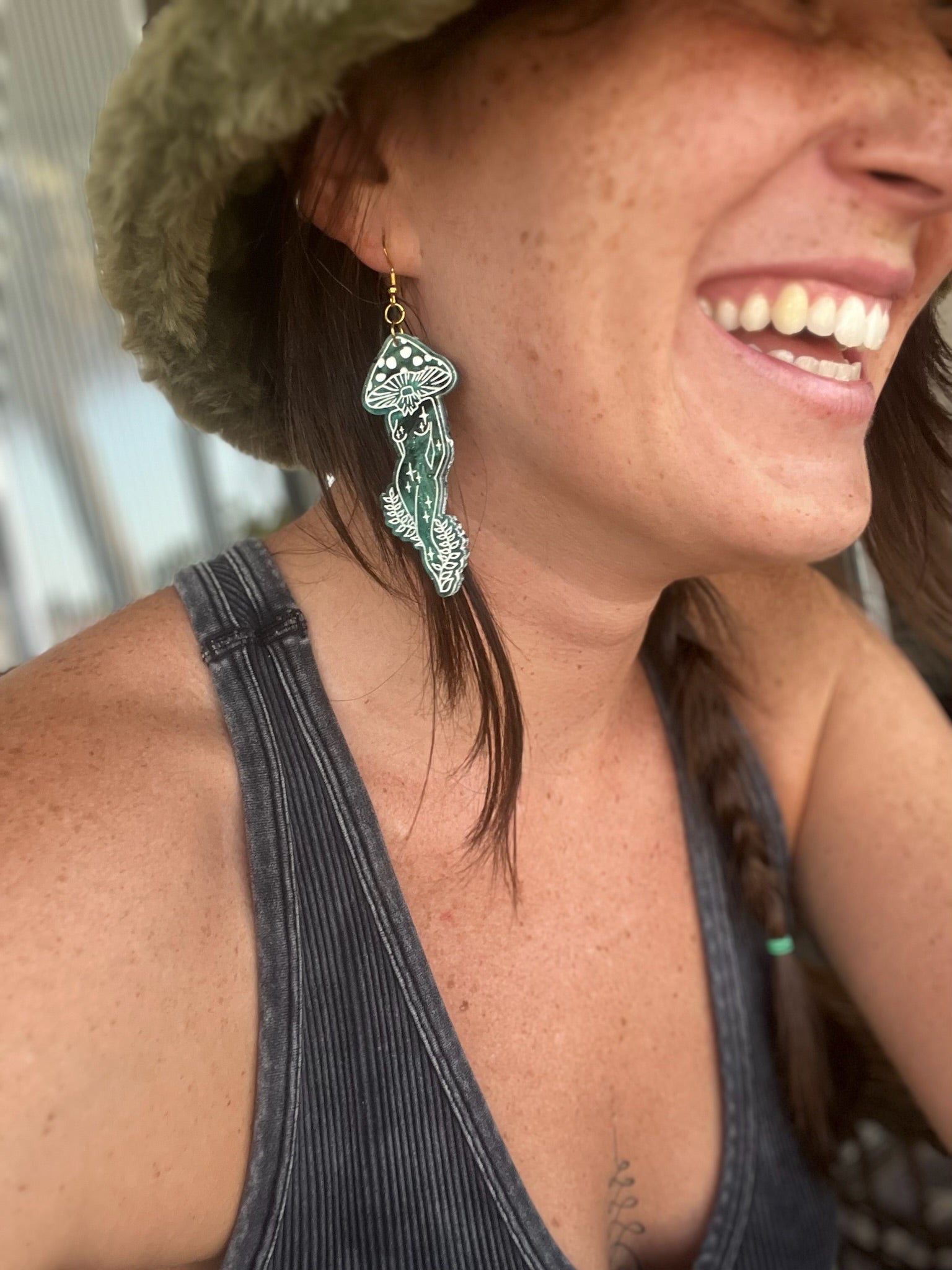 With jade-green tones and shimmering stardust, these earrings infuse your style with a touch of woodland enchantment and cosmic wonder.