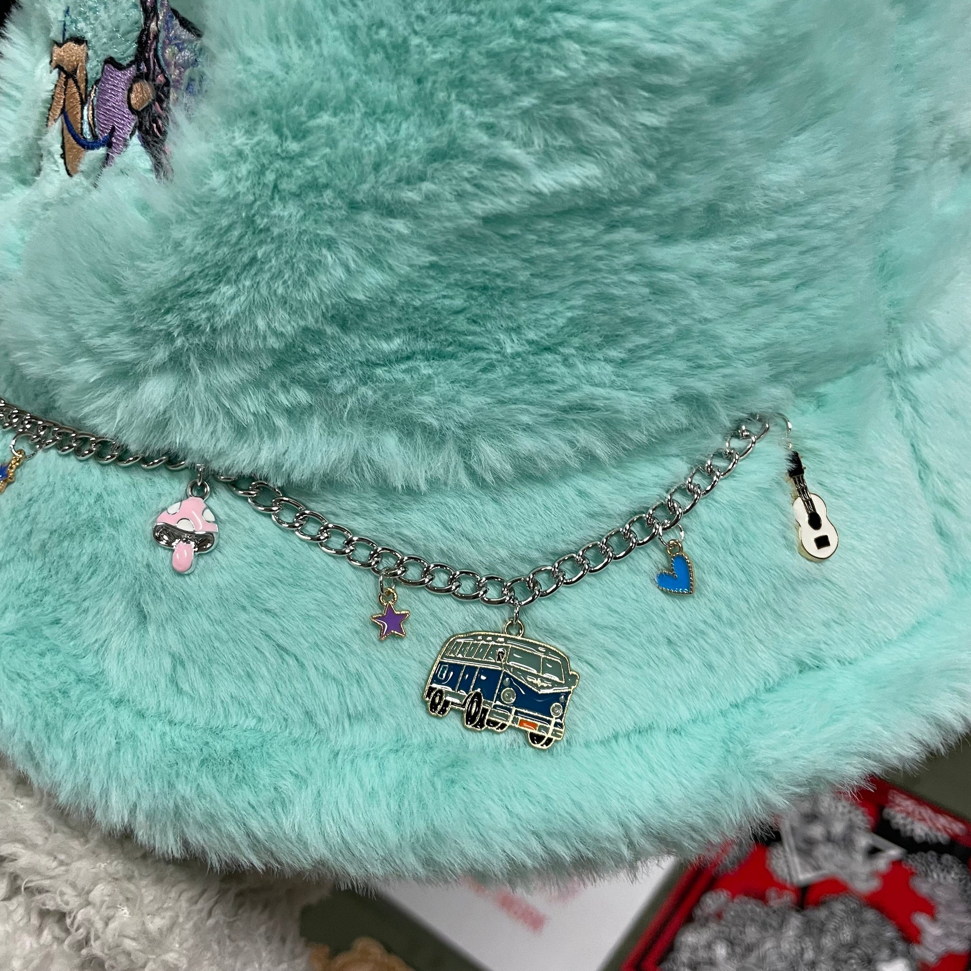 Indulge in whimsical elegance with our charming Teal Lyra Bucket hats! Vibrant teal hues and an embroidered mushroom girl hanging from a floral-adorned lyra infuse each hat with playful charm. Enhanced with a three piece butterfly mushroom pin set. Every piece radiates its own unique personality.
